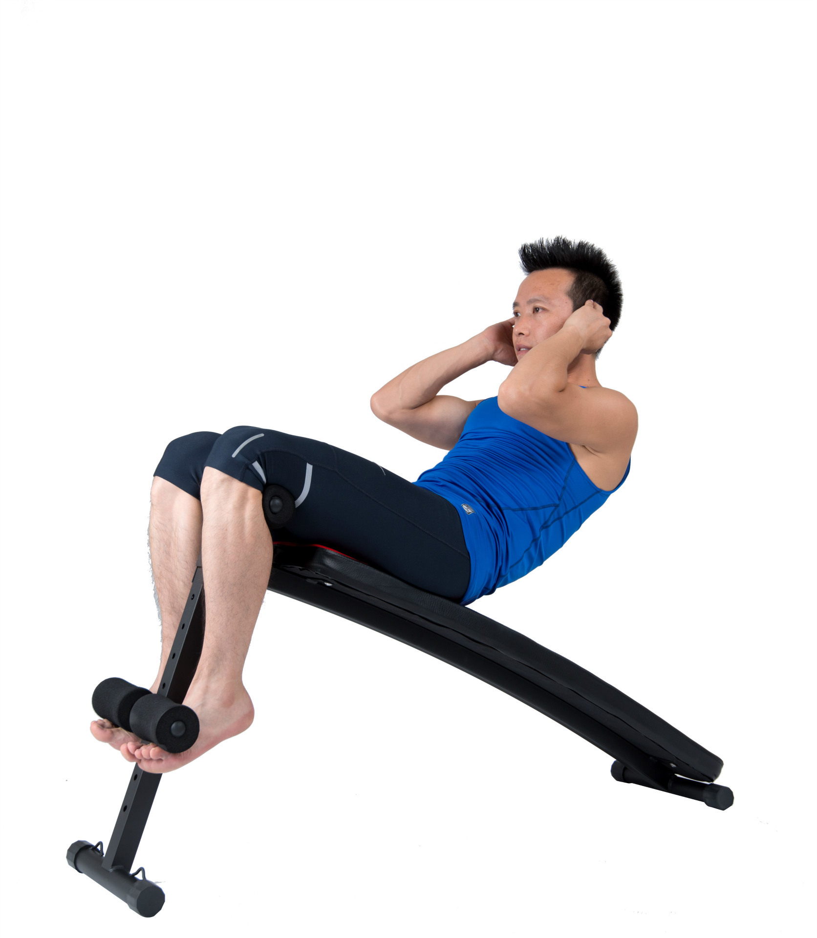 首先,我們來介紹一個(gè)常見的腹部健身器材——仰臥起坐板。使用仰臥起坐板時(shí),首先需要將板子調(diào)到適當(dāng)?shù)慕嵌龋缓筮x擇呈坐姿的方式坐到板子上,將雙腿和臀部固定于垂直位置,雙手交叉抱于胸前,然后開始做仰臥起坐。在做運(yùn)動(dòng)時(shí),應(yīng)該注意雙手不要搭在脖子后面,以免壓迫頸椎;在起坐的過程中,盡量用腹部的力量慢慢坐起來,不要有腰部或者頸部的擠壓感。