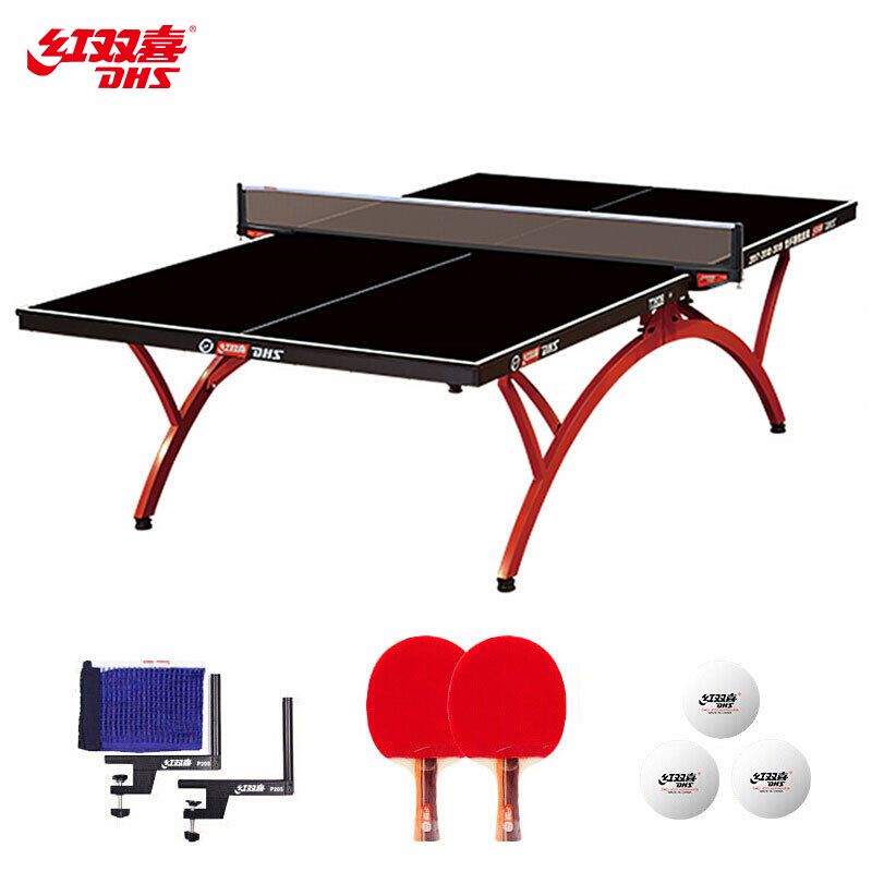 紅雙喜DHS 乒乓球桌室內黑色面板乒乓球臺訓練比賽用乒乓球案子DXBM015-1(T2828)贈網架/球拍/乒乓球